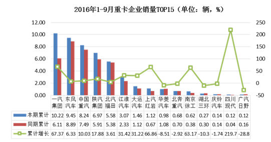 2016年9月國內重型貨車(chē)行業(yè)產(chǎn)銷(xiāo)分析