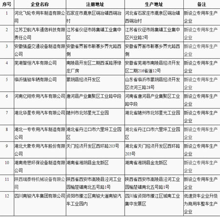 一、擬發(fā)布新增車(chē)輛生產(chǎn)企業(yè)清單