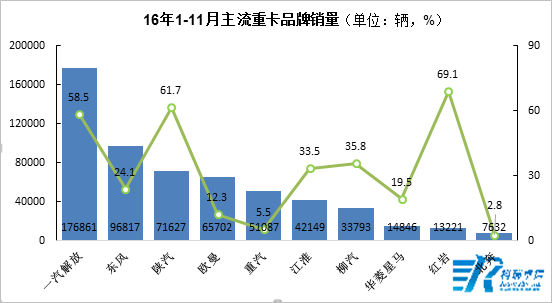 2016年1-11月主流重卡品牌銷(xiāo)量監測